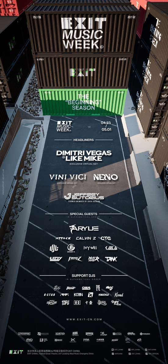 EXIT自面世以来,不断地带给电子音乐市场惊喜,不仅收揽国内外一线电音资源,更是用具有创意的特殊音乐场景为后疫情时代的中国电子音乐局面注入新的生机。