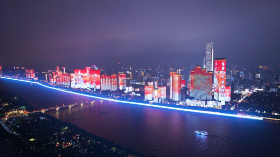 5月1日晚,华灯初上,湘江两岸的建筑楼宇、夜空变成画卷,流光溢彩的灯光化作画笔,为广大劳动者绘就一幕幕流光溢彩的画面,为每一位追梦人绽放满天的星光。长沙“一江两岸”灯光秀,连续三年为劳动者亮起。