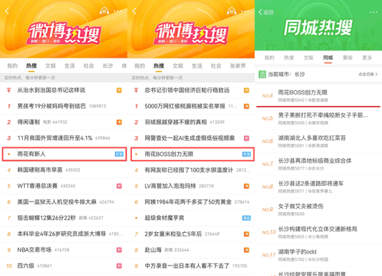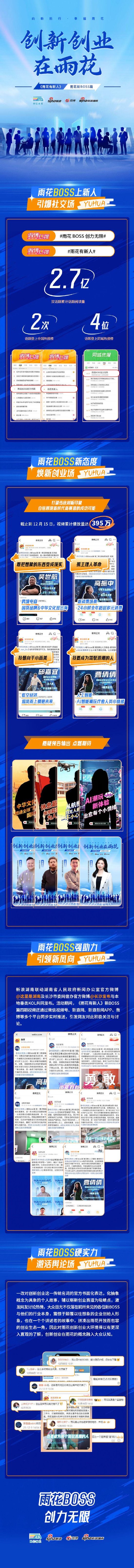 创新创业新印象,媒体网友热议拉满。不仅仅是龙头企业引领浪潮,更有小众创意赛道百花齐放。四期视频选择当下新兴行业,通过各赛道人物创业故事特辑的形式,向网友呈现雨花企业的蓬勃生命力。栏目大胆打破公众对企业BOSS的传统“刻板”印象,让多个创新赛道步入大众视野。一经发布,便引发了网友强烈好奇与讨论。话题#雨花BOSS创力无限# 累计阅读量达1.1亿,登上微博同城榜第4位;栏目上线当日即登上微博全国热搜榜。总话题#雨花有新人# 累计阅读量达1.6亿,同样登上全国热搜榜,网络反响热烈。