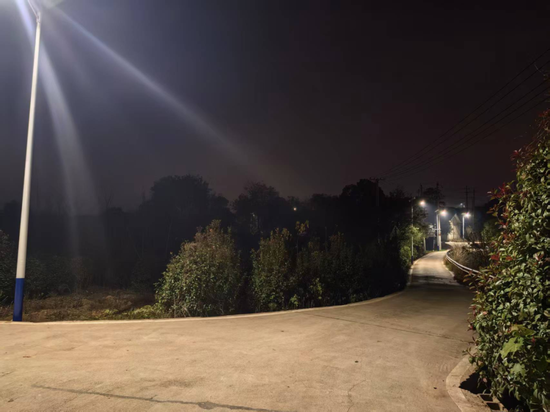 可就在几个月前,这里还是另一番景象。三仙岭村大坝佬组地处长株潭绿心核心区,组上这条主干道是17户村民进出的必经之路。由于一直没有路灯,夜晚漆黑一片,老人小孩出行不便,也存在安全隐患。