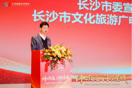 易鹰局长在讲话中充分肯定了长沙旅行社行业过去一年的拼搏与贡献。他指出,2025年长沙接待游客2.33亿人次,旅游总收入2580亿元,较2021年实现翻番;入境游客42.59万人次,居中部省会口岸第一;九个区县(市)全部入选全国旅游百强区,长沙文旅实现从“一域火热”到“全域出彩”的跨越式发展。易鹰强调,旅行社是连接资源与市场的“毛细血管”、引客入长的“主力部队”、游客体验的“第一窗口”,正是大家的坚守与创新,铸就了长沙文旅的“硬核底气”。