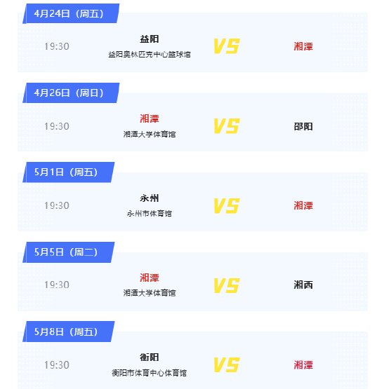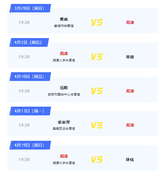 湘潭队常规赛完整赛程