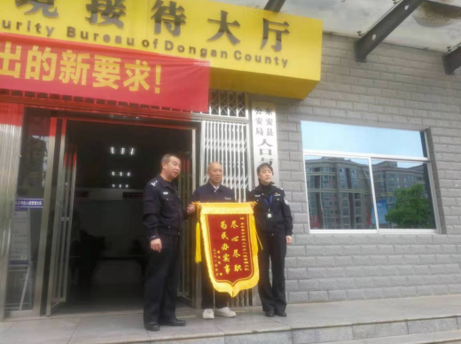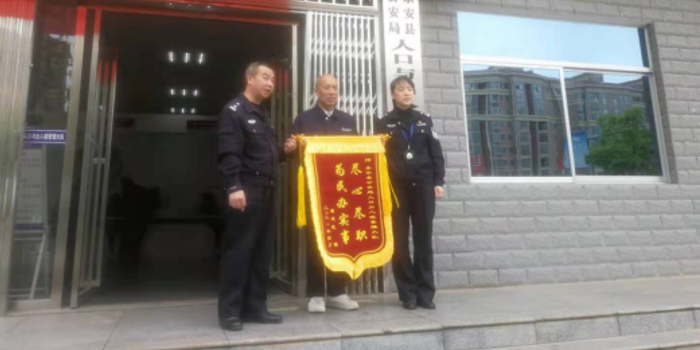 2021年4月20日上午,家住在广州市的群众唐某满怀感激之情,从广州专程来到永州东安县公安局人口与出入境管理大队,将一面写有“尽心尽职 为民办实事”的锦旗送到大队长手中,为东安公安人境战线优质、高效、热情的服务点赞。