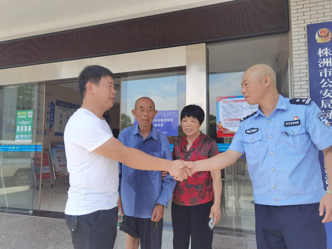 待老人缓过神来,民警与老人沟通,老人自述其名叫殷某文,系醴陵市均楚镇人,其他情况自述不清。民警通过老人户籍地派出所联系到当地村干部,并获取了老人家属的电话,遂与家属取得联系并告知其到派出所接老人回家。