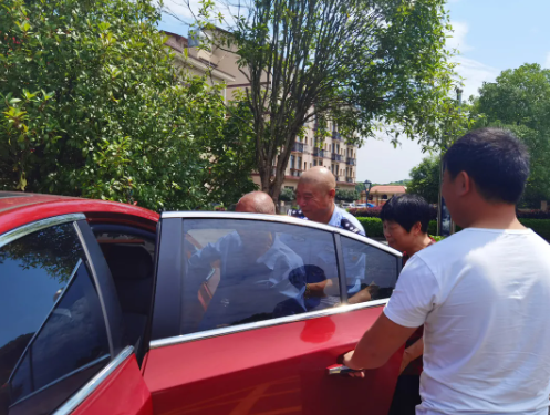 民警将老人送上车时,家属紧紧握着民警的手连声道谢。