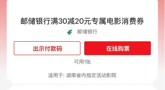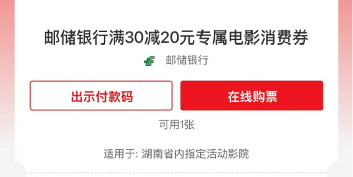 邮储银行湖南省分行升级观影消费券活动 激发电影消费市场活力