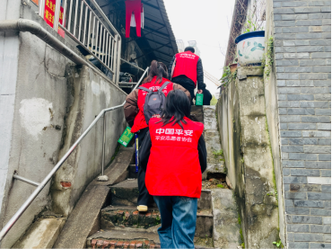 活动当天,空气中夹杂着细雨,但志愿者们的热情丝毫未减。在社区工作人员的引导下,志愿者们分组行动,带着大米、食用油、牛奶等生活必需品,上门探访了社区内多位生活困难的老人。每到一户,志愿者们都与老人亲切交谈,详细询问他们的身体状况和生活需求,耐心倾听他们的心声,并叮嘱老人们注意身体、雨天路滑尽量减少外出。