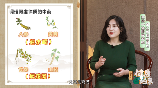 阳虚体质的女性最大的特点是怕冷,可以吃一些中药,比如以人参、黄芪泡水喝,有助补气;用党参、山药煲鸡汤,有助于补中益气,或者吃以人参和牡蛎炮制的膏滋等。