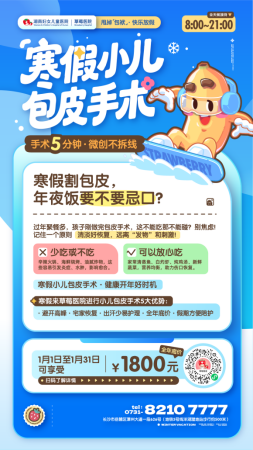 新年羊毛:寒假小儿包皮手术,享全年底价立省400+