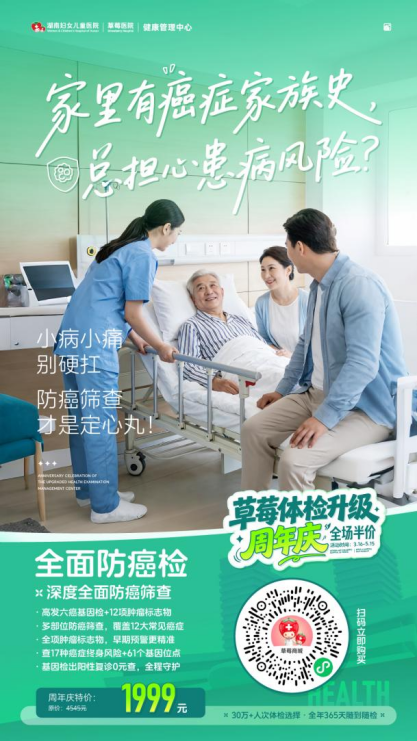 无论是常年熬夜的上班族、有家族病史的高危人群,还是关注家人健康的你,都该把防癌筛查提上日程。草莓医院全面防癌检,用专业的检查、贴心的服务,帮你揪出身体里的潜在癌症风险,让你和家人远离“小病拖成大病”的遗憾。(通讯员:易婷)