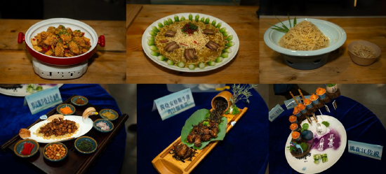 现场佳作纷呈:“竹影鸡片㓎凉蔬”清新爽口,“脆笋羊肚菌酿虾胶”鲜香弹牙,“茶香马帮肉”醇厚入味,“黄精牛三宝”滋补养生…这一道道精心烹制的菜品不仅造型精美、风味突出,更展现出桃江物产的丰富与优质。