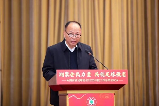 罗器宇作湖南省足球协会2025年度工作总结。他指出,2025年是“十四五”收官之年,也是中国足球振兴发展的关键之年。湖南省足球协会坚持以党建为引领,积极推动各市州足协建立健全基层党组织,不断夯实组织基础;持续完善赛事体系,“湘超”联赛实现提质升级,青少年及社会足球赛事蓬勃开展,多项赛事取得新突破;深入推进体教融合,聚焦青少年人才培养,创新赛制赛风,加强教练员、裁判员队伍建设,同步强化行业作风建设,积极营造健康有序的足球发展环境。他强调,湖南省足球协会将重点围绕深化改革、强化人才支撑、夯实青训基础、加强自身建设等方面持续发力,落实“1245”工程要求,推动“湘超”联赛实现多元融合,加快构建三级青训体系,广泛凝聚各方力量,全力推动湖南足球实现跨越式发展,为建设体育强省贡献力量。