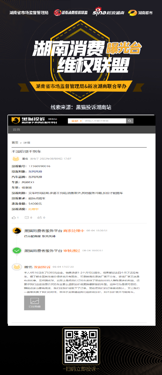 湖南消费维权联盟丨买车交定金却要加价才提车 “东风株洲锦天4S店”被指销售欺诈