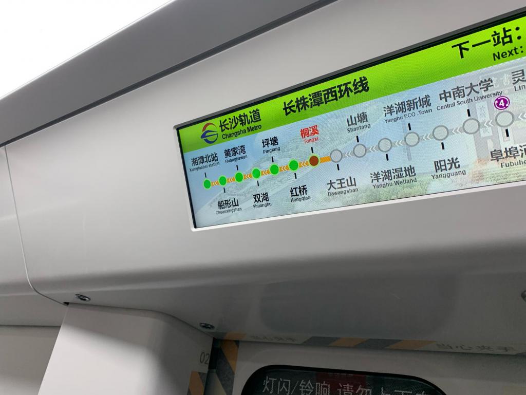 上午 8 时 55 分许,记者从大王山站搭乘试运行的列车前往湘潭北站,中途将经过桐溪、红桥、坪塘、双湖、黄家湾、船形山等站点。