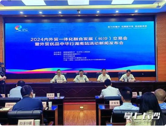 关注在家门口买出口好物!7月12日至14日,全国首个以“内外贸一体化”为主题的展会2024内外贸一体化融合发展(长沙)交易会将在湖南国际会展中心(芒果馆)举办。7月2日,省商务厅举行新闻发布会,省商务厅厅长沈裕谋,省商务厅副厅长廖光辉,副市长、市工商联主席康镇麟介绍了展会筹备情况。
