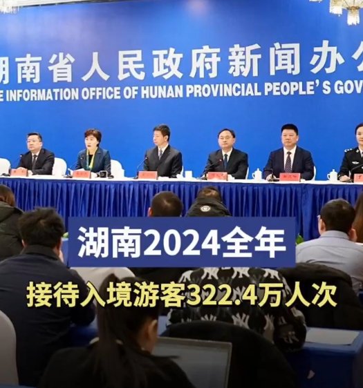 1月11日,促进湖南入境旅游发展新闻发布会在长沙召开。会上发布数据,湖南省2024全年接待入境游客322.4万人次,同比增长187.7%,入境旅客总花费161671.9万美元,同比增长456.5%。长沙上榜“2024全球100目的地”。张家界航空口岸入境外国游客超50万人次,领跑全国非省会地级城市。