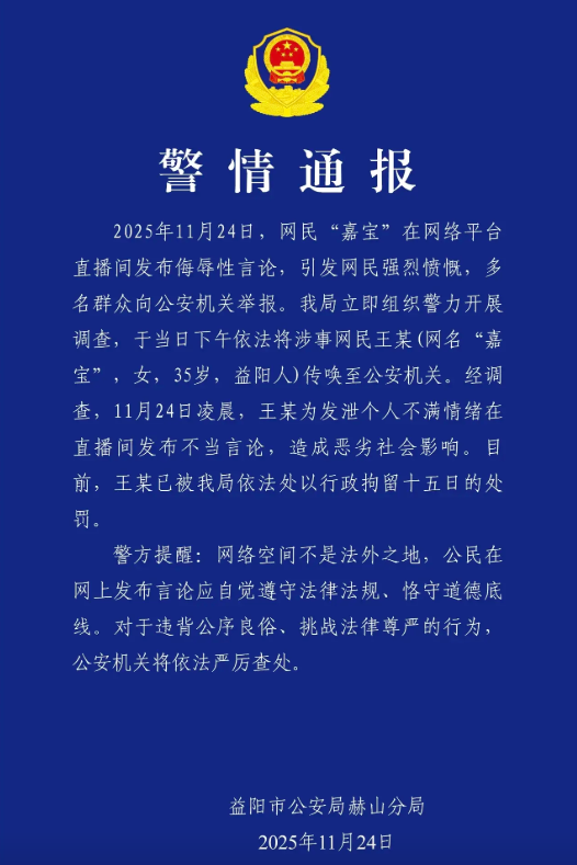 11月,衡阳市在网络巡查中发现,某直播平台账号负责人宁某某为追求关注度,在直播中言语低俗、辱骂“湘超”比赛教练及球员。针对这一行为,相关部门11月13日对其进行了约谈。