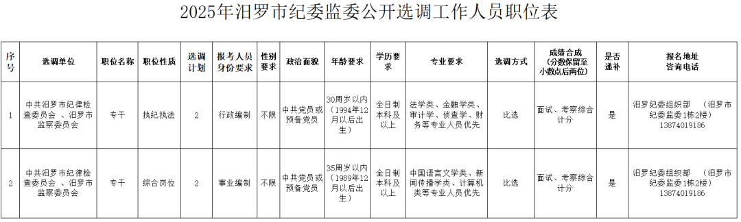 汨罗市纪委监委2025年公开选调工作人员公告