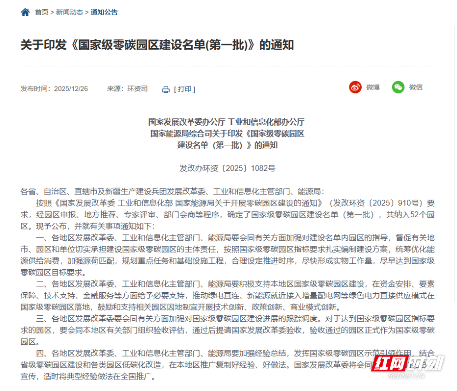 今天(12月26日),国家发展改革委发布我国首批52个国家级零碳园区建设名单,其中湖南湘潭经济技术开发区入选。