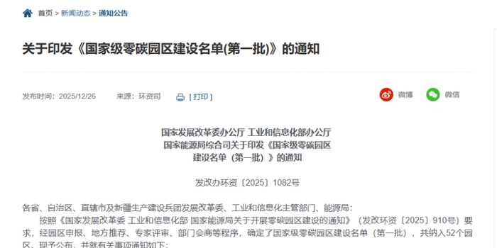 关于印发《国家级零碳园区建设名单(第一批)》的通知