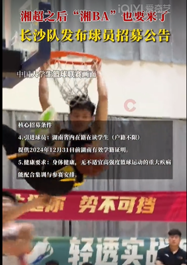 2026“湘BA”即将来袭!近日,长沙市体育局发布公告,为组建2026“湘BA”湖南省篮球联赛长沙市男子篮球代表队,现面向社会公开招募球员,公告如下: