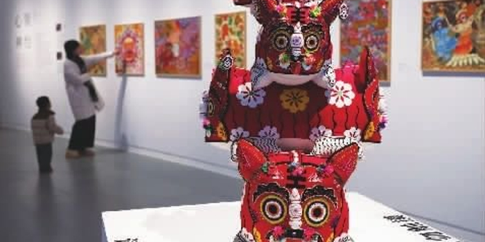 1月25日,在长沙梅溪湖艺术博物馆“春风得艺——马年迎新非遗艺术展”上,市民通过欣赏非遗艺术作品,感受传统文化魅力,喜迎新春佳节。林道辉摄