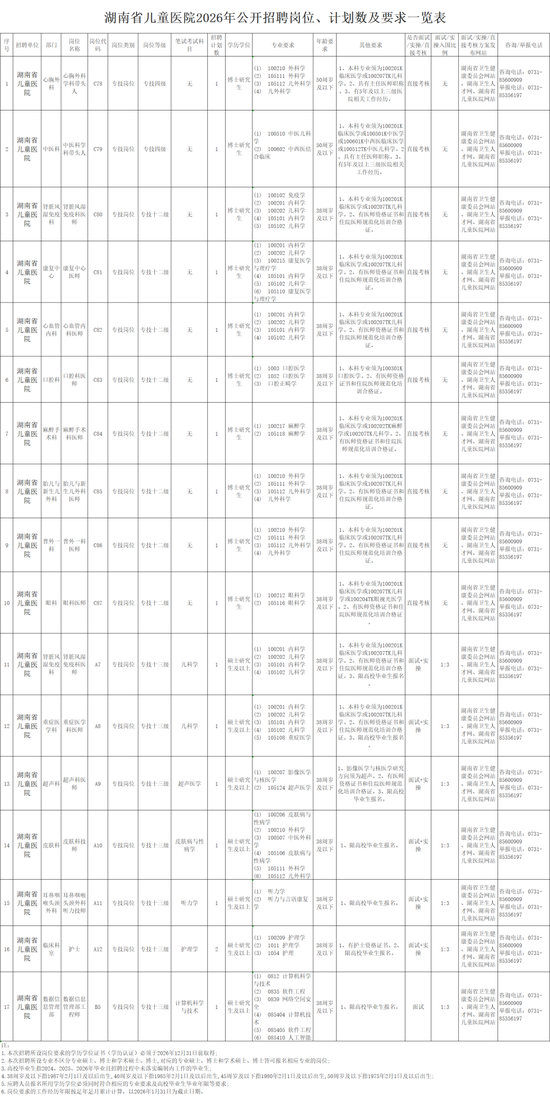 湖南省儿童医院2026年公开招聘公告