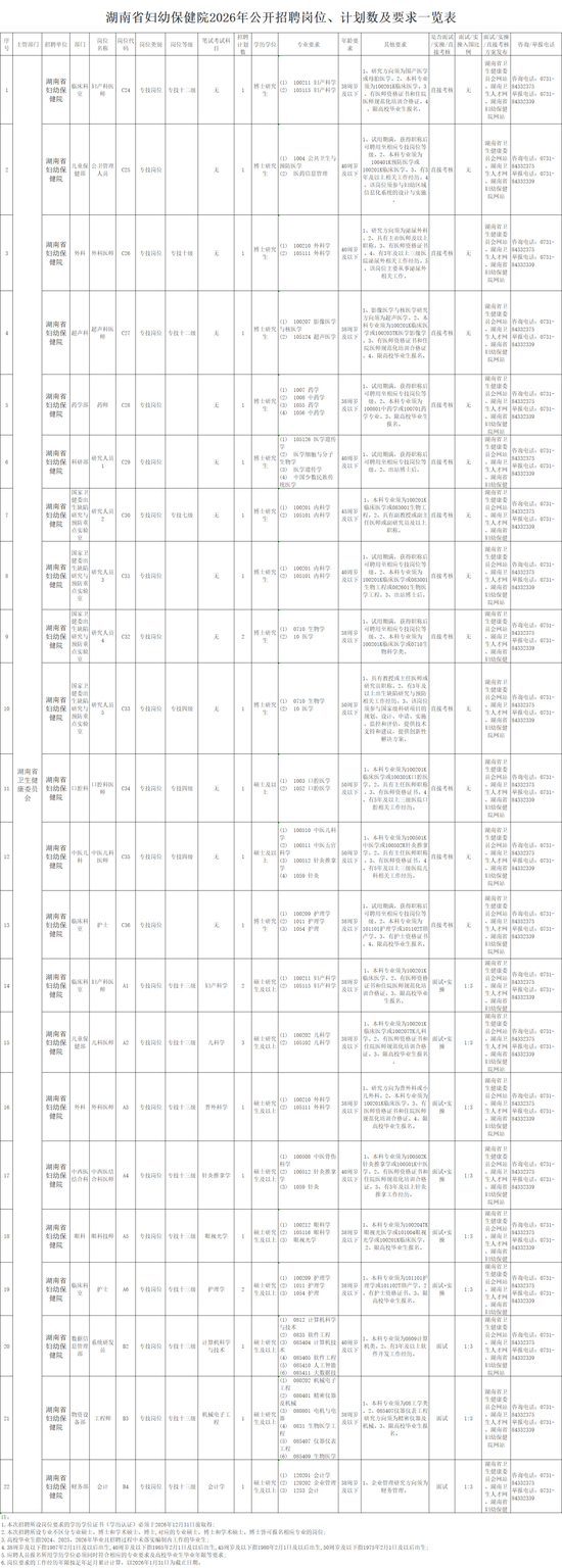 湖南省妇幼保健院2026年公开招聘公告