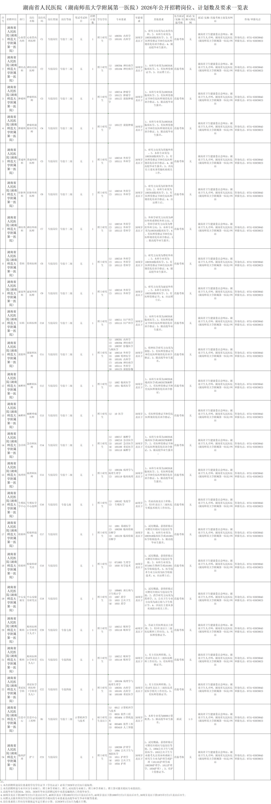 湖南省人民医院(湖南师范大学附属第一医院)2026年公开招聘公告