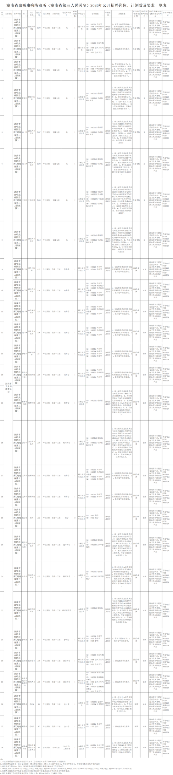 湖南省血吸虫病防治所(湖南省第三人民医院)2026年公开招聘公告