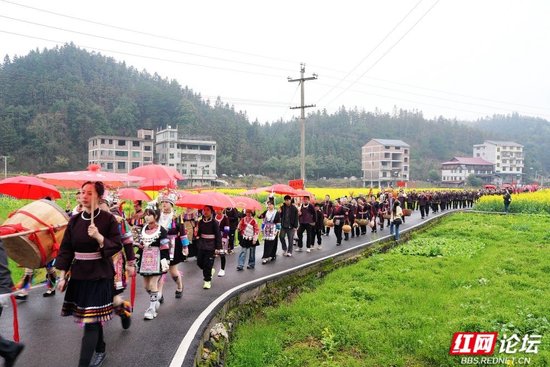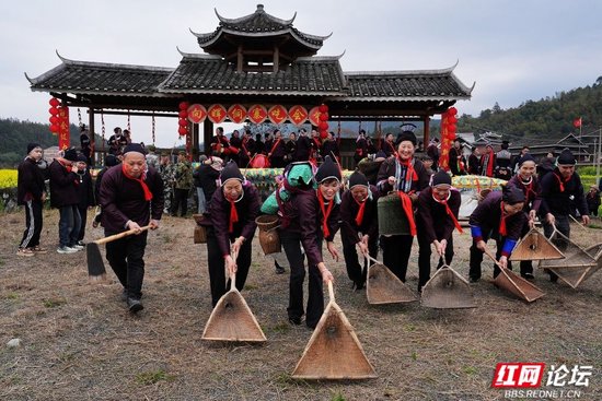 通道地处湘桂黔三省交界,是侗、汉、苗、瑶等14个民族同胞的聚居地。“吃会节”传承至今,每年正月初六,十里八乡的村民汇聚一堂,开展“闹春牛”、哆耶等活动,延续民族团结传统。如今的向晖村通过民俗文化与红色旅游融合,吸引游客前来体验。