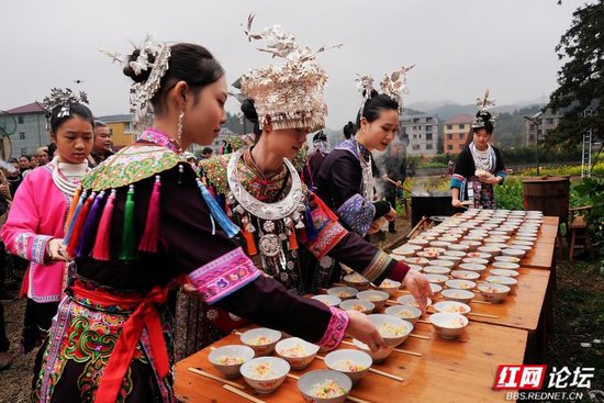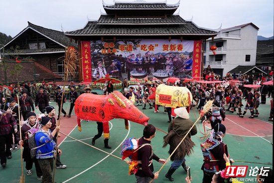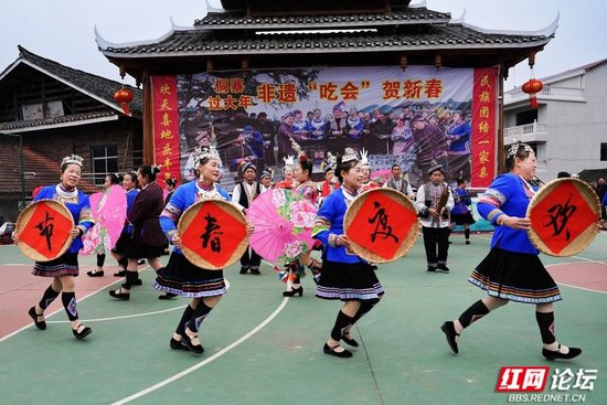 关注2月22日,农历正月初六,怀化市通道侗族自治县双江镇向晖村举办一年一度的“吃会节”。这个侗族传统节日起源于宋代,相传由侗族首领杨再思之子杨政岩建寨时创立。他召集各族民众,通过祭拜讲款、定规立约的方式,化解矛盾、凝聚人心,逐渐形成“福寿庆会”的习俗,即“吃会节”。