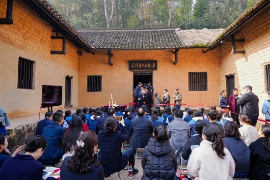 值得关注的是,滴水洞一号楼为本次大赛新增比赛点,选手们立足毛主席阅读休息露台开展实景教学,依托伟人旧居原貌与历史场景精准还原,让红色教学的场景代入感与情感感染力大幅提升,精彩的沉浸式授课不仅打动了来自韶山学校的中学生观众,更吸引了往来游客驻足聆听,不时赢得阵阵热烈掌声。