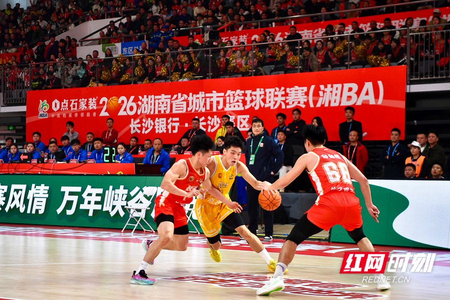 关注红网时刻新闻3月27日讯(记者 李长宏 周雨墨 符洹雨 何超)3月27日晚,点石家装2026湖南省城市篮球联赛(湘BA)在长沙开幕。开幕式演出活力满满,现场球迷热情高涨。揭幕战中,长沙队与怀化队展开激烈比拼,球员奋力拼搏、赛场气氛火爆,最终长沙队以83-65大胜怀化队。