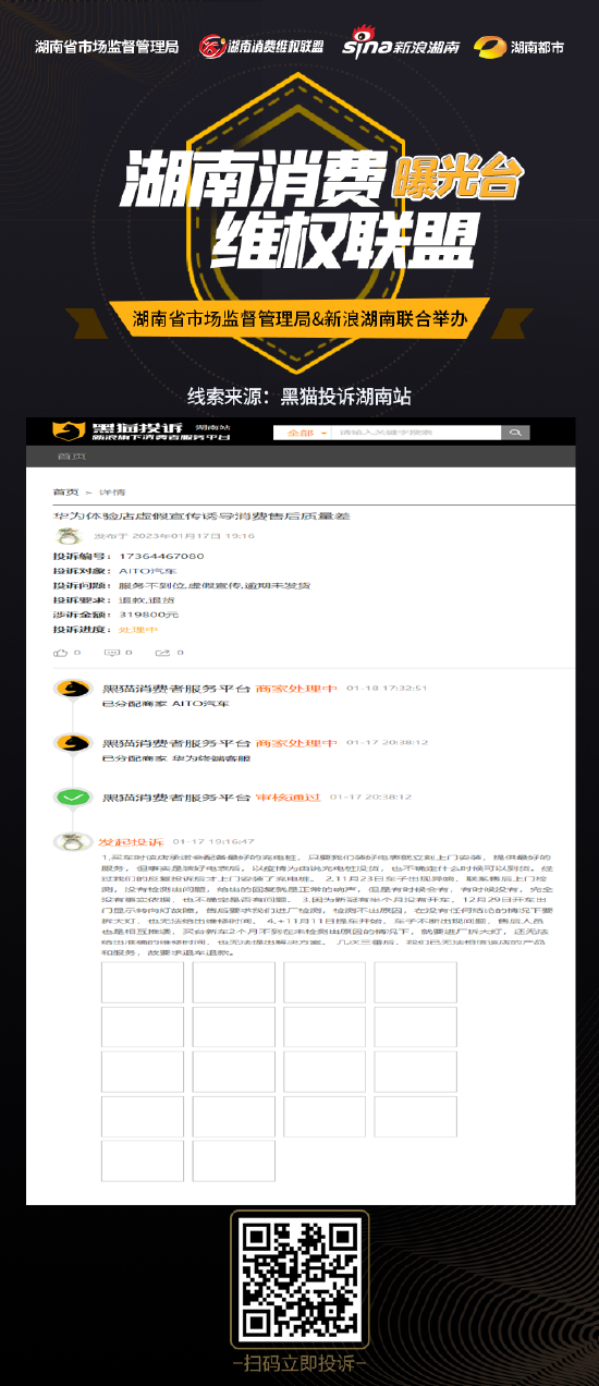 后续进展,我们将持续关注,投诉详情:https://hunan.tousu.sina.com.cn/complaint/view/17364467080黑猫投诉湖南站,守护湖南人的消费权益,本地投诉入口链接:https://hunan.tousu.sina.com.cn(免责声明:文章内容来源于“黑猫投诉” 平台用户提交的投诉内容,仅代表投诉者本人, 不代表新浪立场。)